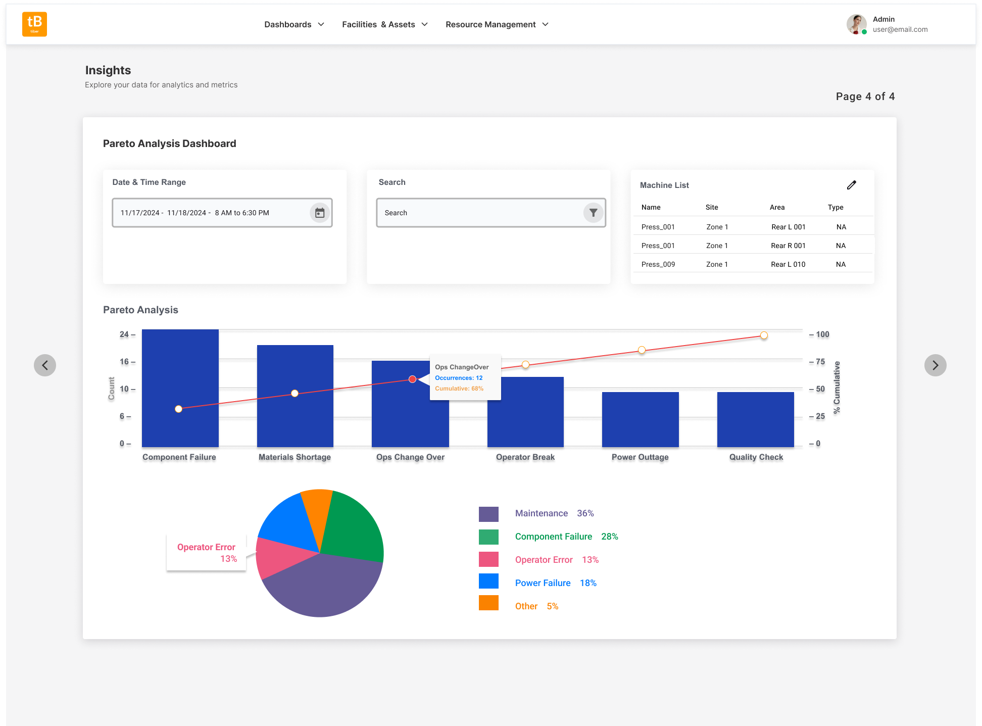 With a simple interface, Tiber makes it easy for machine operators to log downtime events and report issues. Operators can focus on their tasks without cumbersome paperwork, ensuring accurate data and faster issue resolution.